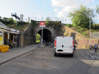 L'uscita della stazione prima del ponte ferroviario