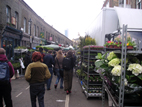 I venditori, intenti ad accattivarsi l'attenzione degli attenti visitatori, coltivano essi stessi le piante e fiori o li importano da tutto il mondo. Il mercato domenicale inizia alle 8 di mattina. Tuttavia, i venditori giungono sul posto sin dalle 4 per montare le loro bancarelle. La varietà dei fiori è notevole, i prezzi competitivi. Come già detto, l'attrattività del mercato è accresciuta dalla schiera di graziosi negozi che attorniano le bancarelle: ci troviamo in presenza di quel che ormai è divenuto una rarità: una sessantina di negozi indipendenti (cioè non legati ad alcuna delle grandi catene commerciali in cui siamo abituati a spendere), di cui ne vedete uno nella seconda fotografia che vi abbiamo proposto: negozi di vestiti "vintage", di dolci, piccole gallerie d'arte, d'antichità, di cibi (es. pane e formaggi), pub, caffetterie e ristoranti, articoli legati al giardinaggio, candele, saponi e tanto altro.